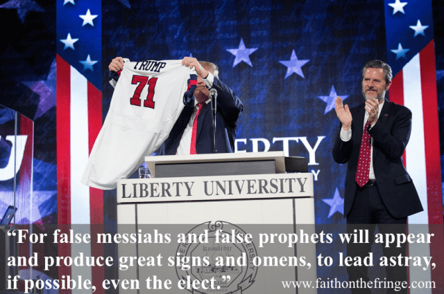 Trump is giving the graduation address at Liberty University, which claims to be the largest Christian college.