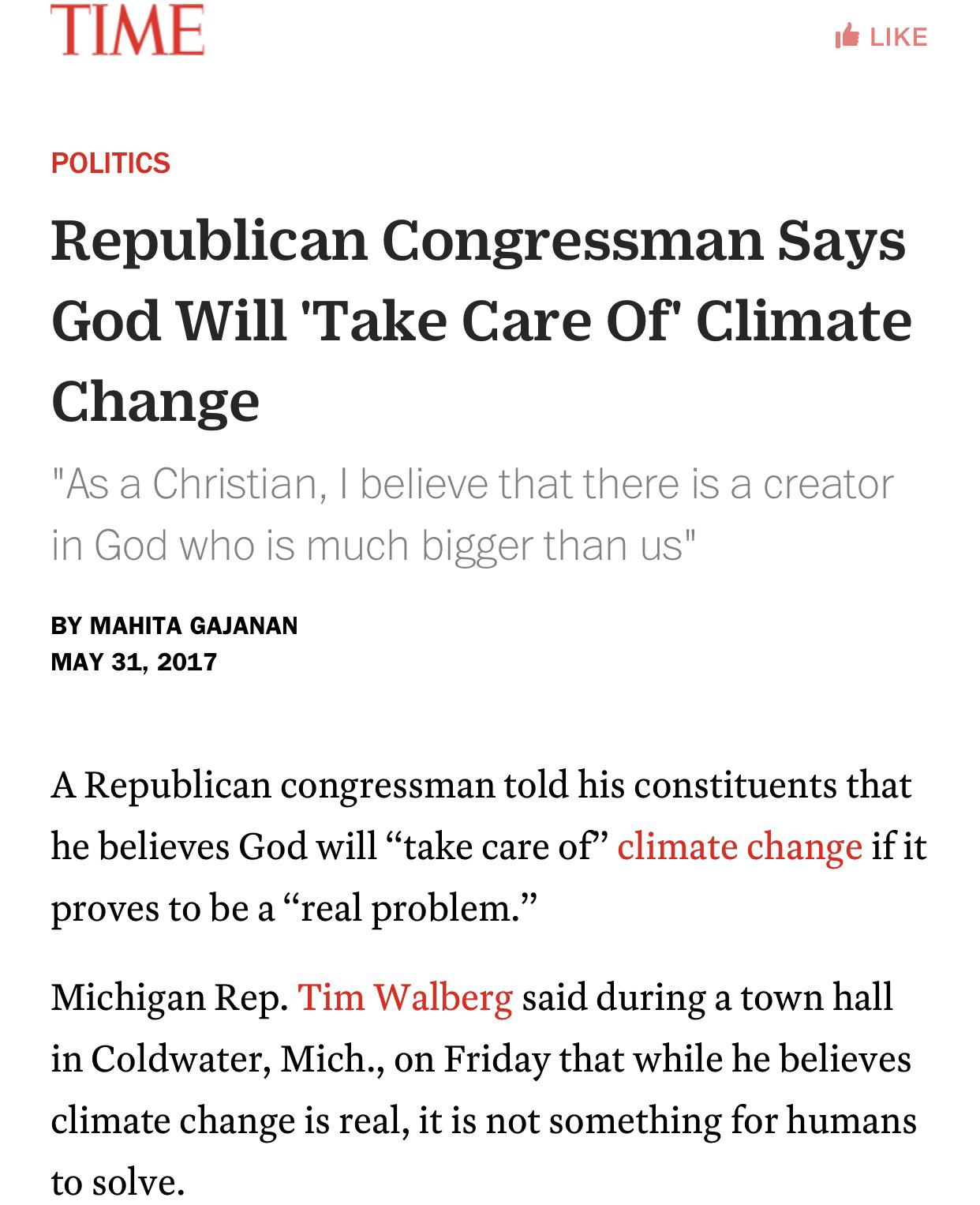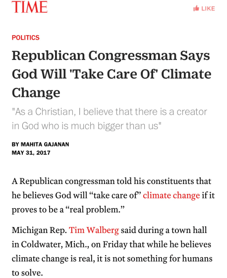God will take care of climate change, but Rep. Walberg took things into his own hands when it came time to help 20 million people lose their health insurance.