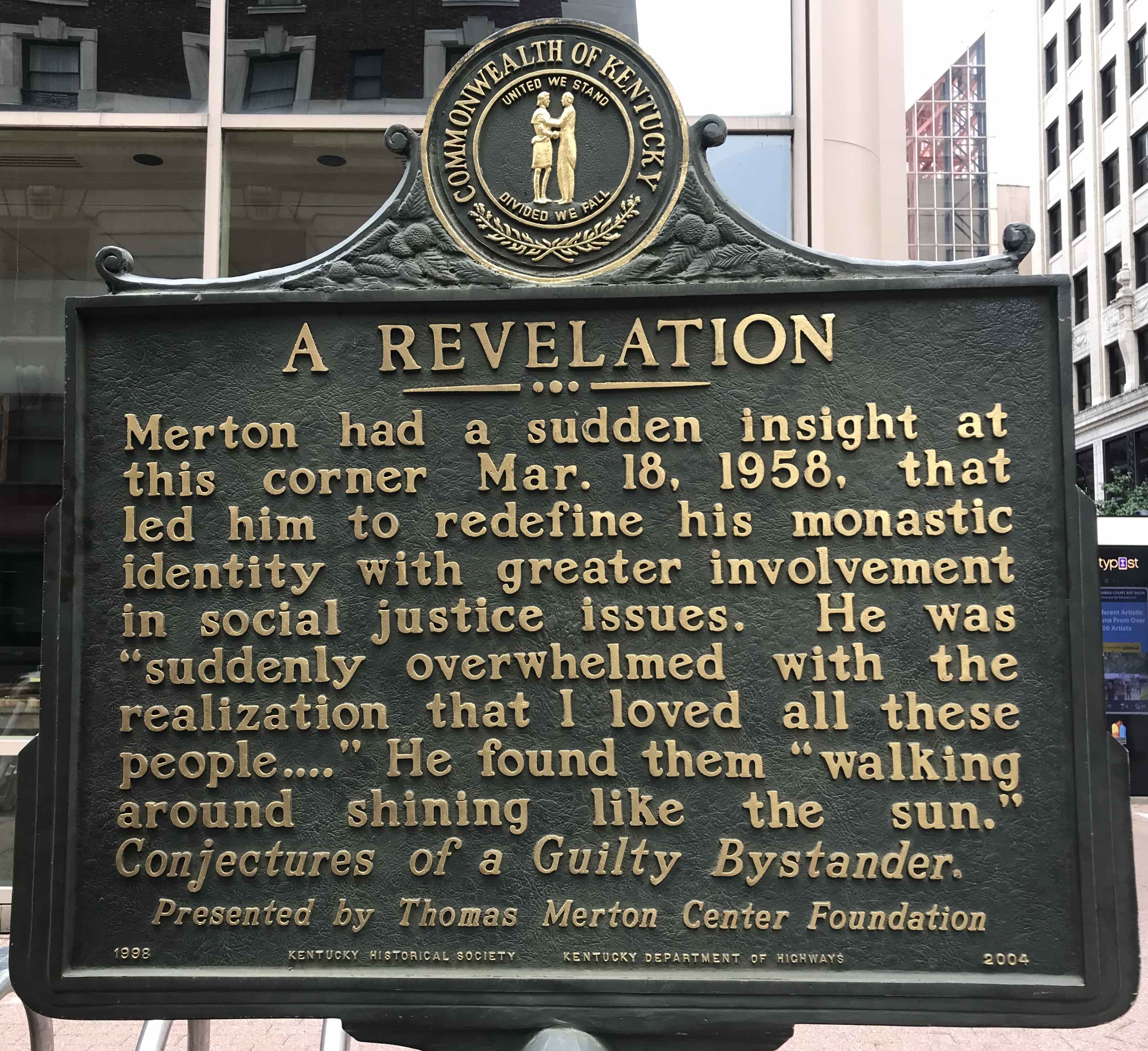 In Conjectures of a Guilty Bystander, Merton writes about a transformative moment he experienced in downtown Louisville, in 1958.