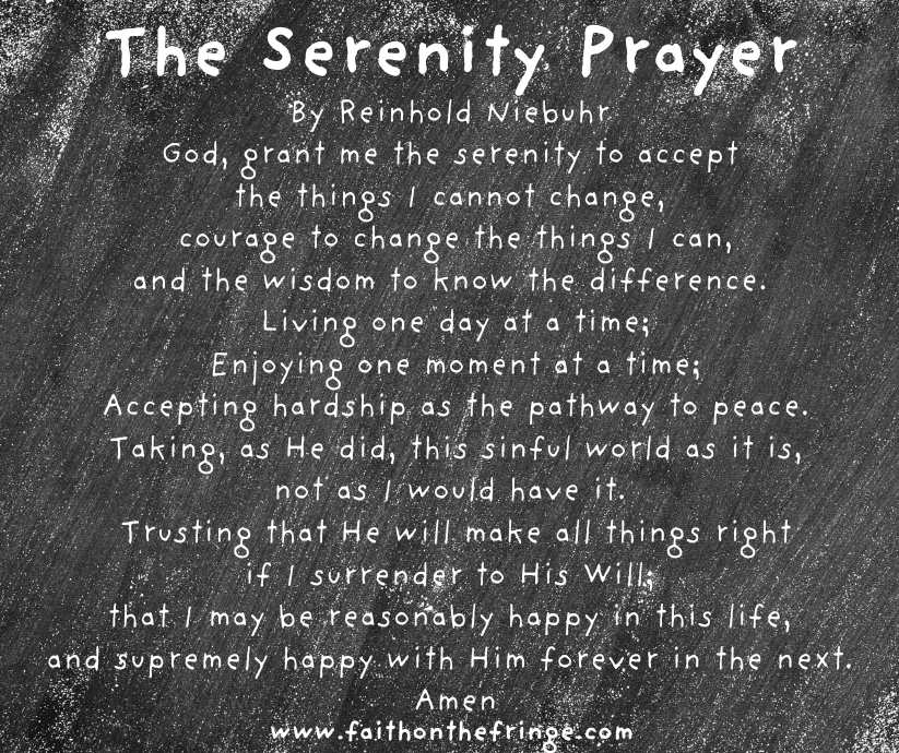 The Serenity Prayer, by Reinhold Niebuhr. Follow this link to support Faith on the Fringe by shopping Amazon for his writings.